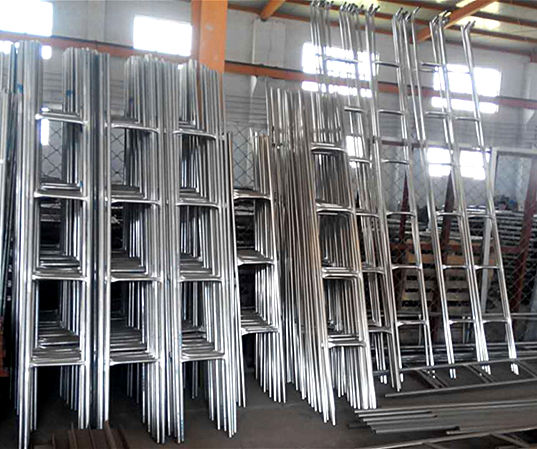 8. 較后上梯子,內梯放在里面就可以;上外梯時,外梯下面的兩個小側放在下面槽鋼上,然后用四個梯子夾鉤住,上、下面各兩個,在水箱板的法蘭上打上眼,穿上螺絲擰緊即可。整臺水箱就安裝完畢了。